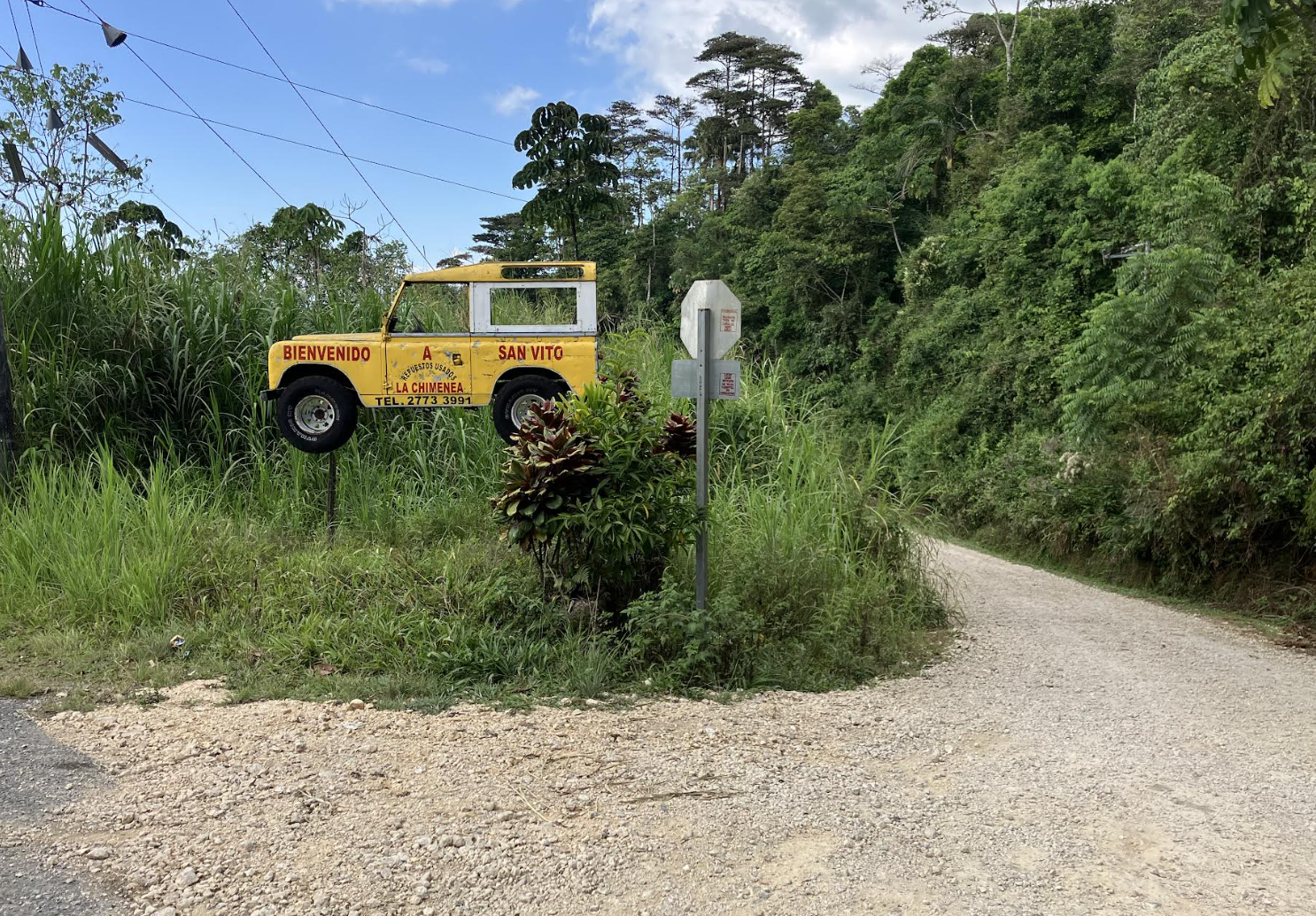 Many of you know where to find the Sansonetti Road; but if you do not, see the photo below. It is on the main road between Linda Vista and San Vito…just past Finca Cantaros.